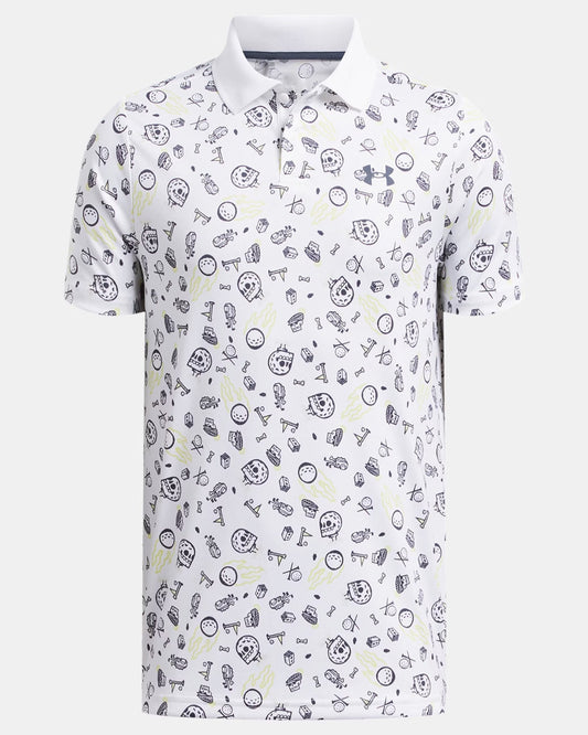Men's White Golf Polo Shirt for Stylish Performance with Celebration Print
