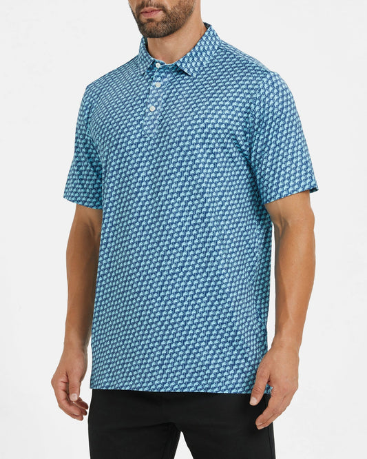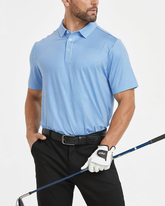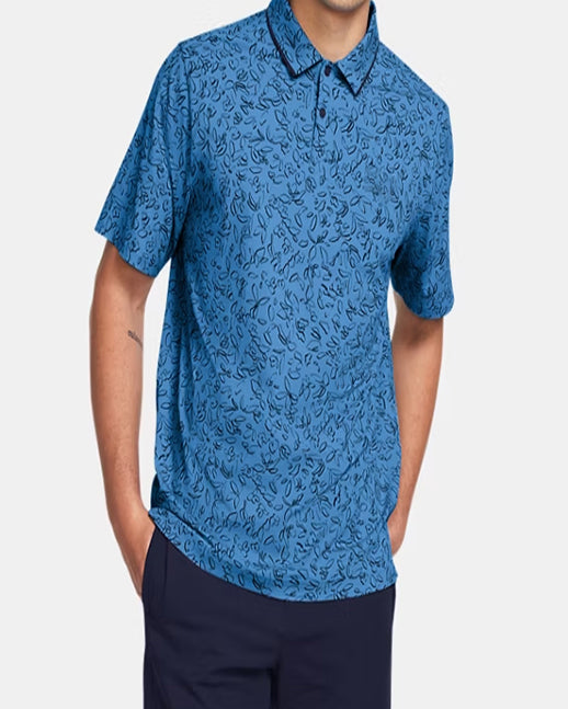 Men's Blue Golf Polo Shirt with Leaf Print for Stylish Performance