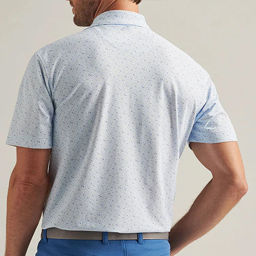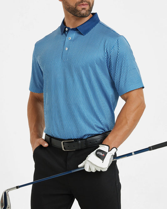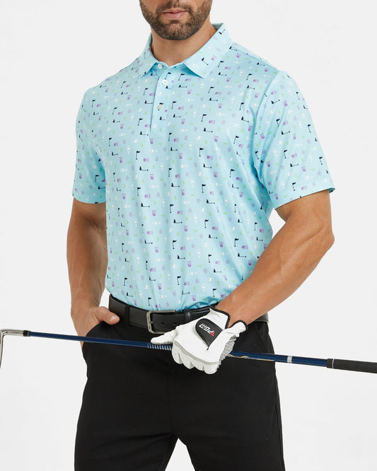 Men's Blue Golf Polo Shirt with Unique Golf Element Prints