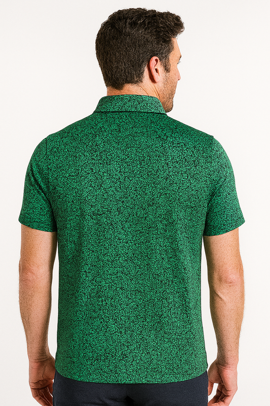 Men's Floral Golf Polo Shirt - Green with Floral Print
