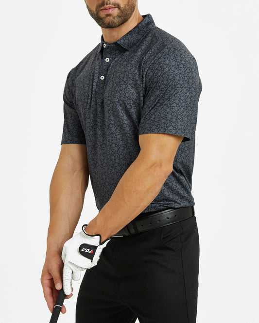 Men's Navy Blue Golf Polo Shirt with Petal Print for Stylish Performance