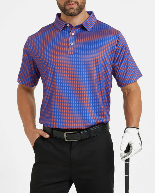 Men's Purple Golf Polo Shirt with Stylish Square Pattern - Perfect Golf Apparel