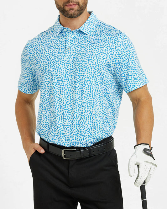 Men's Golf Polo Shirt - Stylish Performance Wear with Blue Star and Flower Prints