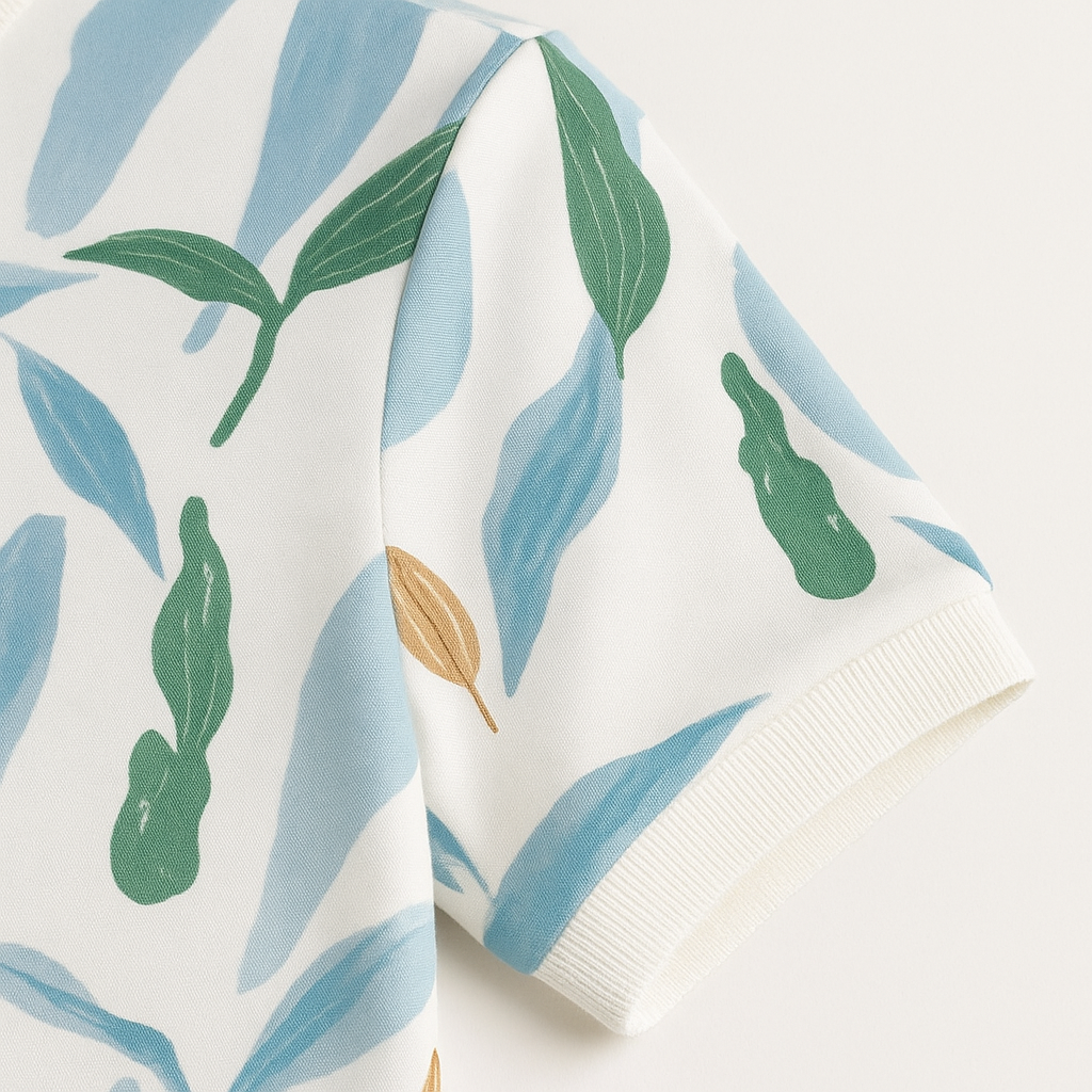 Crafted for refined ease and timeless style, this golf polo brings the calm elegance of the coast to your game. Its ocean-inspired abstract print in soft blues, greens, and tans captures the essence of seaside serenity, while the lightweight stretch fabric with moisture-wicking technology keeps you cool and composed from the first tee to the last putt. Designed for comfort and sophistication, it’s perfect for both on-course performance and off-course relaxation.