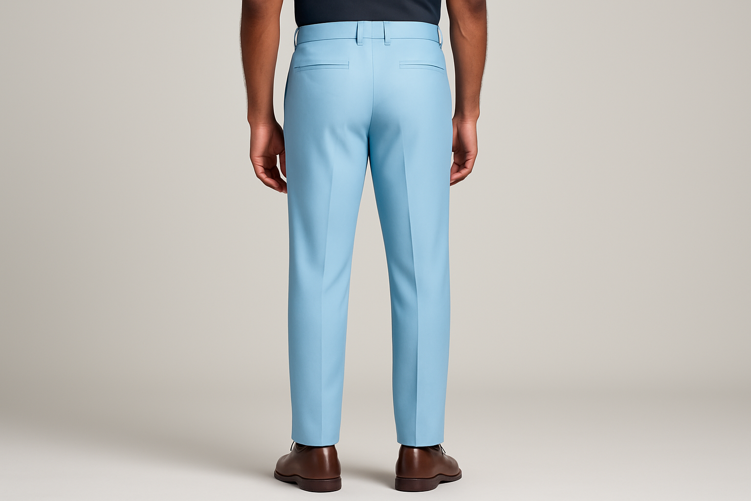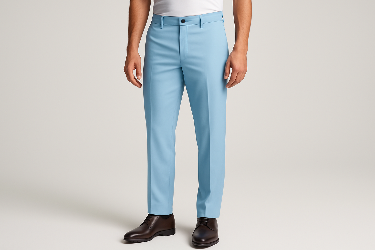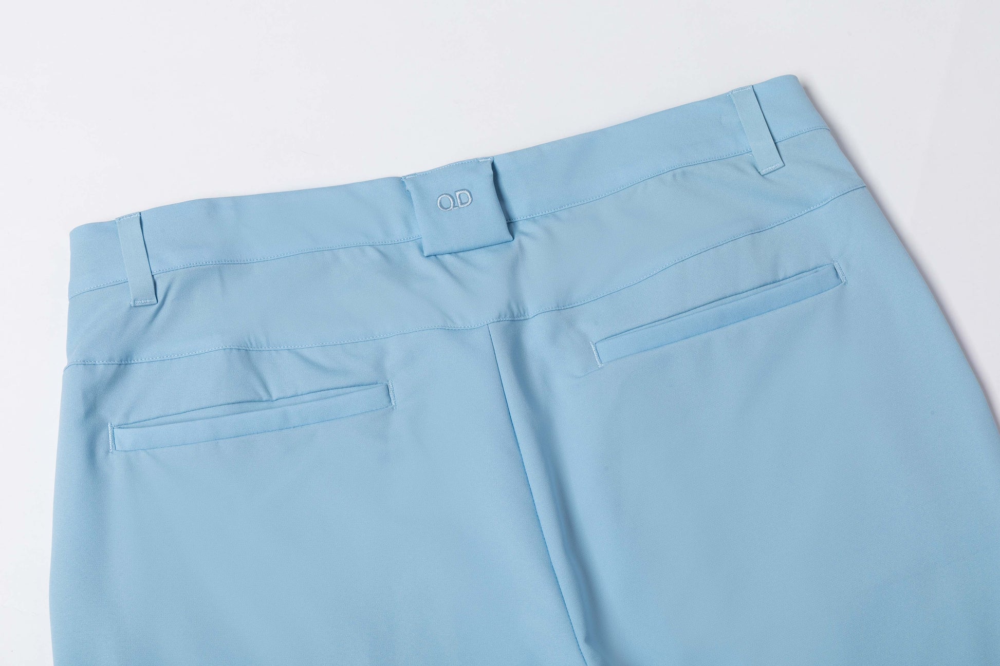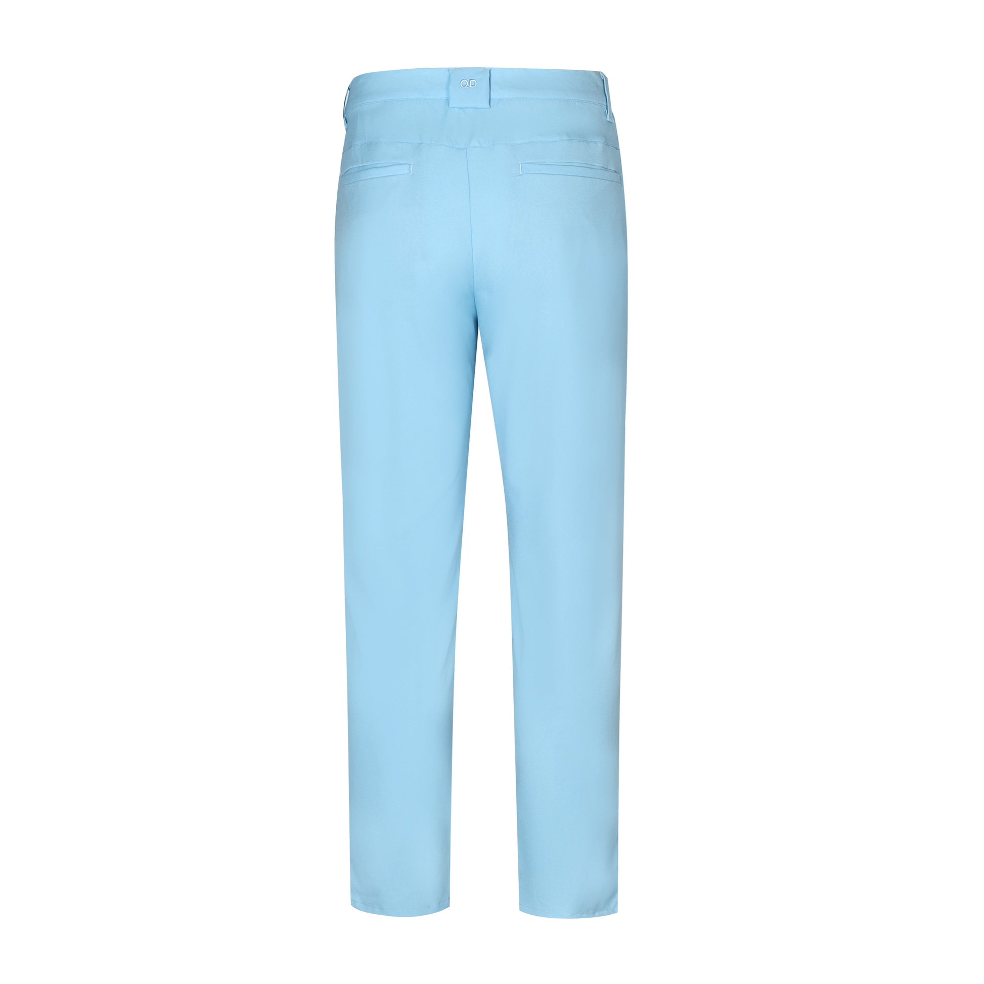 These sky - blue trousers are tailored from premium fabric, boasting exceptional breathability, stretch for unrestricted movement, and a sleek drape that elevates any look
